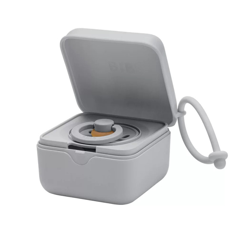 The BIBS Pacifier Box is a multifunctional product that can be used not only for storing pacifiers on the go but also as a container for small toys and snacks, as well as a sterilizer. The box can hold up to three BIBS pacifiers. It comes with a special insert for one pacifier and a pacifier clip. The insert fits all BIBS pacifier models — no matter which BIBS pacifier you prefer, it will fit in the box.
