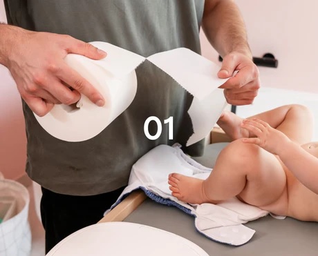 Adjust size to your baby. Insert Happy Hygiene diaper liner for messless poop removal.