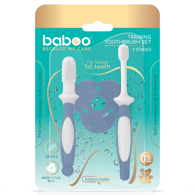 The oral care set is designed to help your child learn how to brush their teeth gradually, step by step. The set includes 3 parts: a gum massager, a first toothbrush, and a safety ring.
