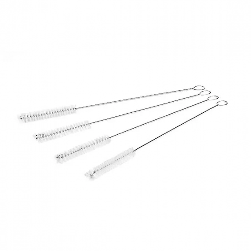 The set of brushes designed for cleaning straws and mouthpieces and other hard-to-reach parts of children's cups and bottles. The bristles of the brushes are made of material which does not scratch the surface.