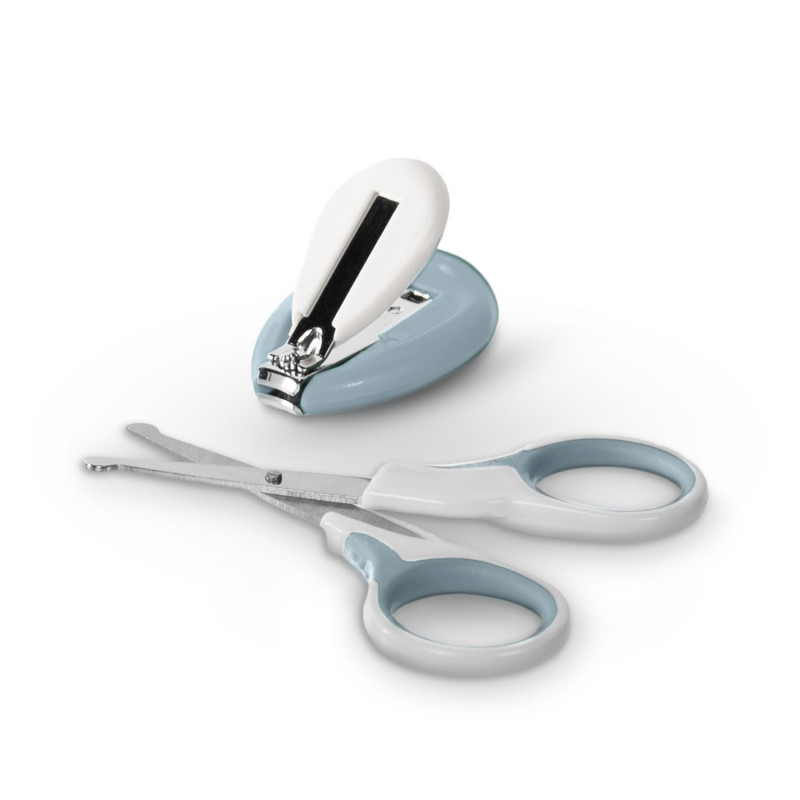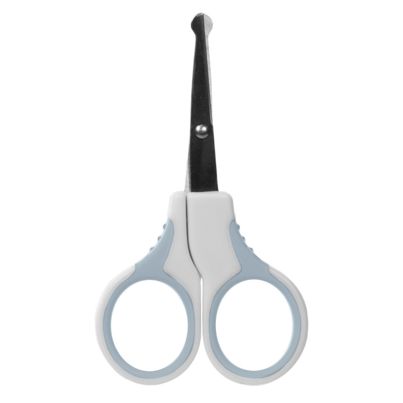 • Scissors with ergonomic handles and rounded tips make nail trimming easy and safe.