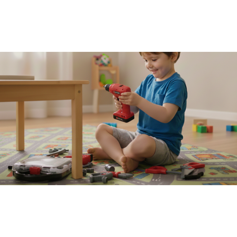 The case with a toy screwdriver and other tools makes an excellent gift for any little boy. Now he can help Dad or carry out “small repair tasks” around the house on his own. The wide variety of tools (37 pieces) helps teach children the names of different tools, significantly expanding their vocabulary. All items are made from safe plastic. The convenient case solves the problem of storing all the pieces of the play set.