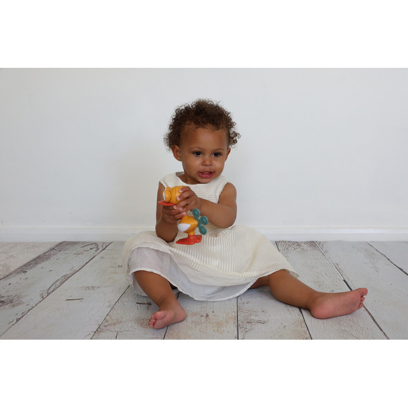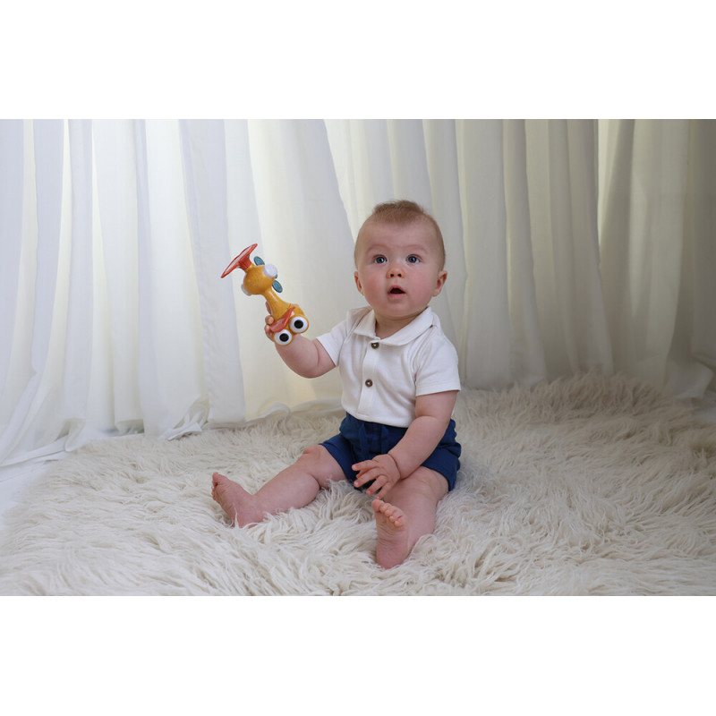 This fun little bird from Tolo Bio will bring lots of smiles to your baby! With its movable eyes, you can create many funny expressions, and the playful sounds – clicking head, rustling wings, and rattling body – will make playtime even more exciting. The bird is lightweight and easy for small hands to grasp, helping develop coordination and motor skills.