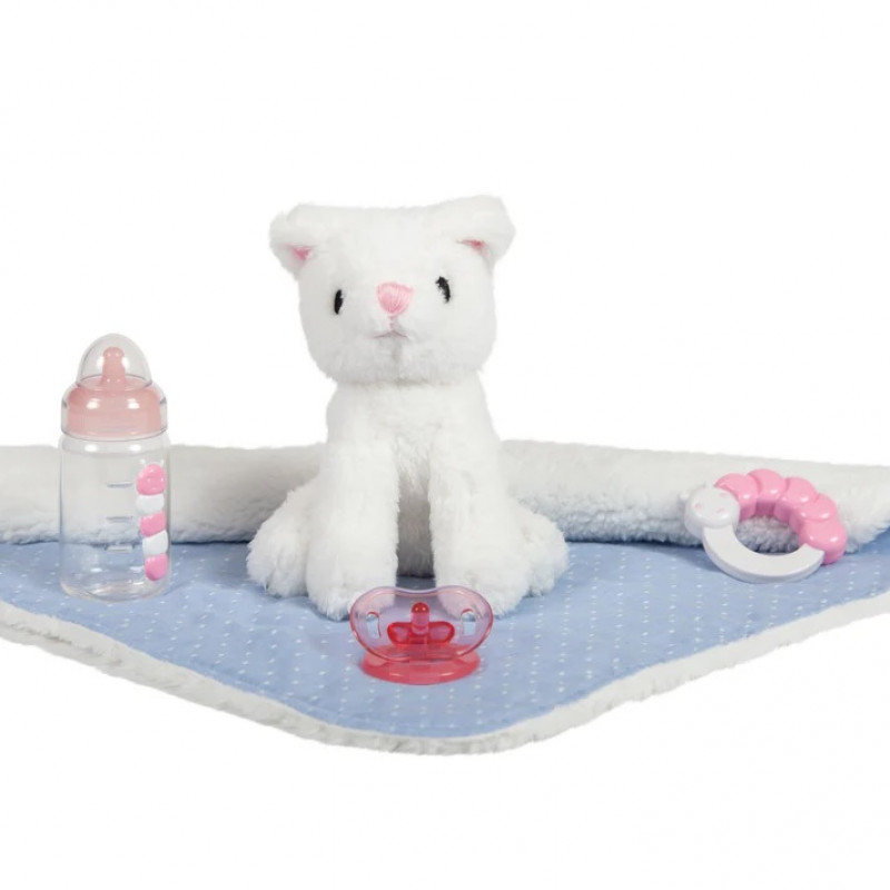·      Набор из 11 предметов включает куклу, комплект одежды, пинетки, ободок, плед, плюшевого котенка, браслет из больницы, соску, бутылочку, погремушку и свидетельство о рождении.
