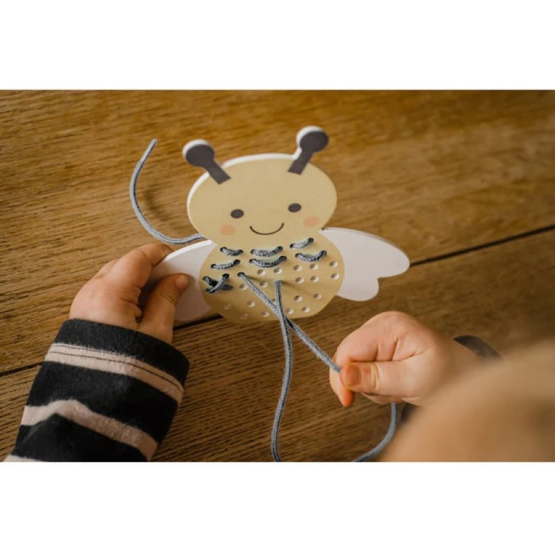 Развивайте творческие способности малышей с этим замечательным набором для вышивания в виде пчелки. В комплект входит деревянная карточка с изображением пчелки и шнурок, идеально подходящие для обучения простым стежкам вышивки и развития мелкой моторики.