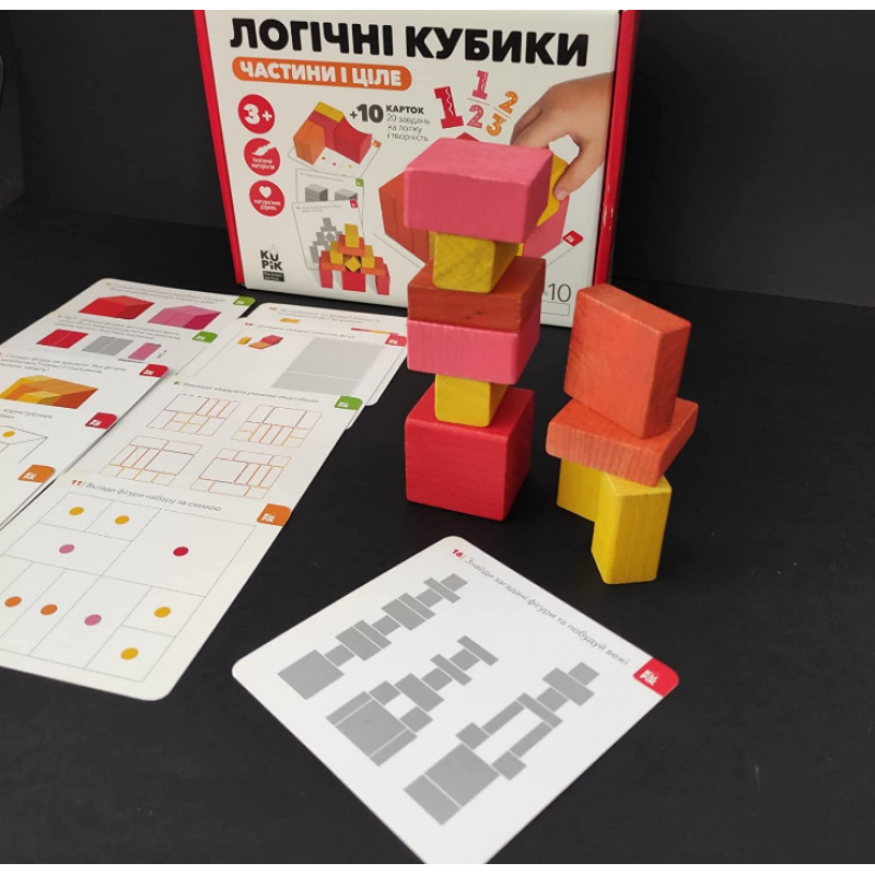 - 10 two-sided cards with logic tasks, puzzles, 3D models and patterns.