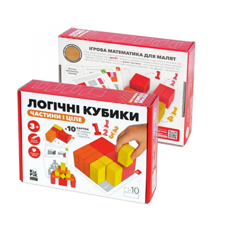 Let's learn maths! The toy helps develop spatial awareness, fine motor skills, logical thinking, patience, and coordination of movements. A great way to explain simple mathematics, including fractions. Many things (pizza, an apple, a candy bar) can be not only whole, but also divided into equal parts: two (halves), three (thirds), four (quarters).