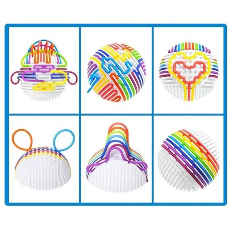 This product is a ball with multiple flexible silicone strips in bright colors, distributed across its surface. The strips can be slid, bent, and arranged in various ways, allowing users to create different patterns and shapes, stimulating creativity and imagination.