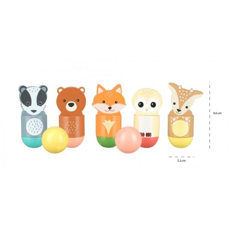 a colorful wooden ball! Kids will have hours of fun knocking them down and