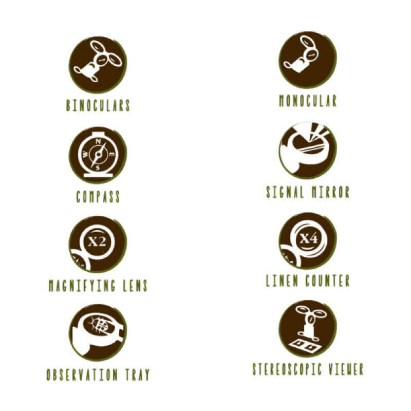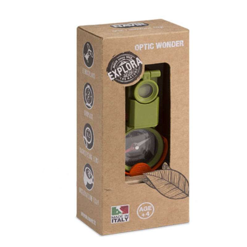 Explora Optic Wonder is a multifunctional educational tool made from eco-ABS plastic. It includes binoculars, a magnifying glass, a compass, a magnifying mirror, an observation plane, a signaling mirror, and a stereoscopic viewer. Ideal for active exploration and studying the natural world.