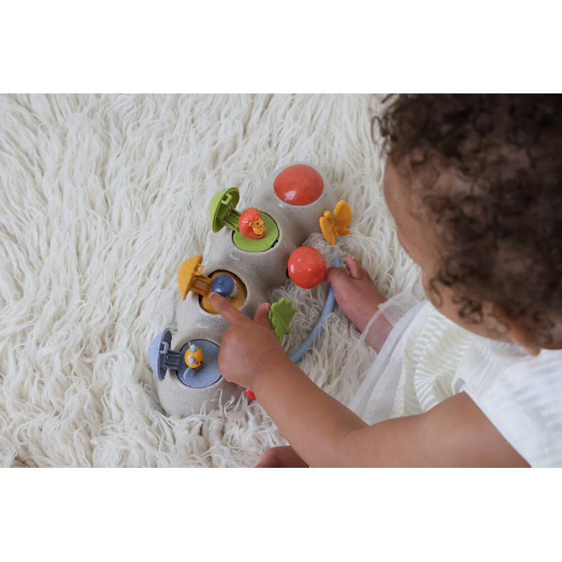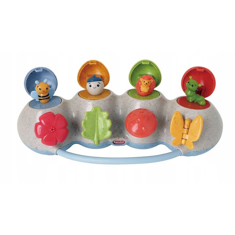 Игрушка Tolo Bio Pop Up — это увлекательная и простая в использовании игрушка, которая предлагает несколько вариантов, чтобы персонажи "выпрыгивали" из своих гнезд.
