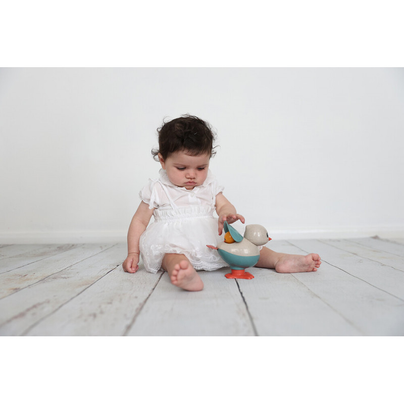 Яркая развивающая игрушка, которая обязательно понравится малышу! У курочки мягкие «пищащие» лапки и подвижные элементы. Нажмите на туловище — голова забавно выскакивает вверх. Нажмите на хвост — появляется маленький цыплёнок! Игра превращается в весёлое исследование причинно-следственных связей.